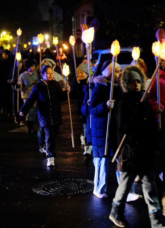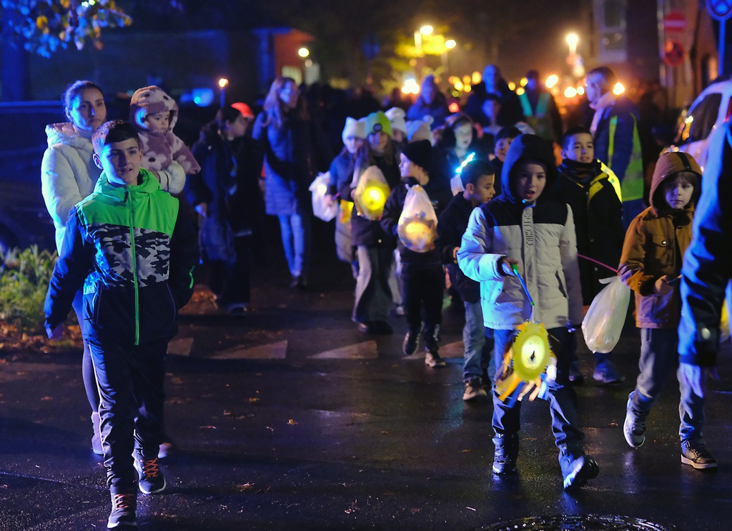 Bereits am Morgen hatten sich die Kinder der Barbaraschule mit einem gemeinsamen Martinssingen in der Turnhalle der Schule auf den Abend eingestimmt.