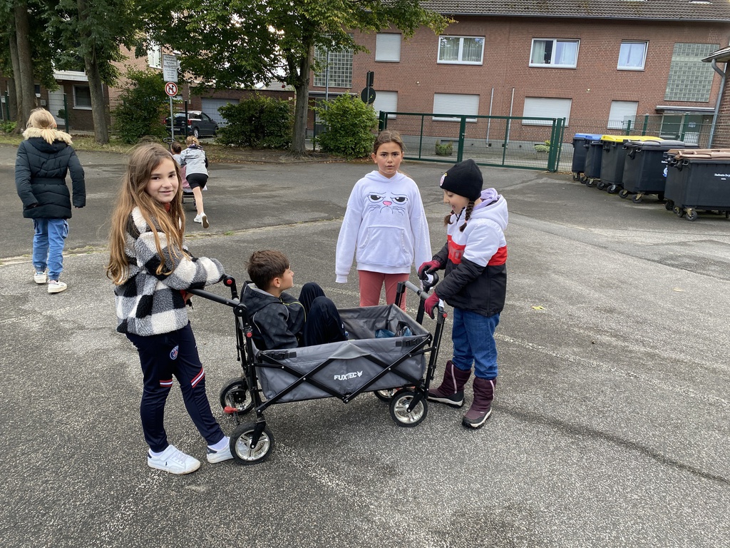 Die Projektwoche war super! Wir, die Klassen 4a und 4b haben Holz für eine coole Totholzhecke zum Schutz der Insekten gesammelt. Wir haben einen Film über Insekten gesehen, sind mit dem Bollerwagen in den Wald gefahren, haben Holz und Müll gesammelt und durften in einen großen Traktor steigen. Es war einfach toll!
